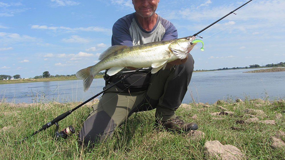 Große Elbzander beim Zanderangeln mit Gummifisch